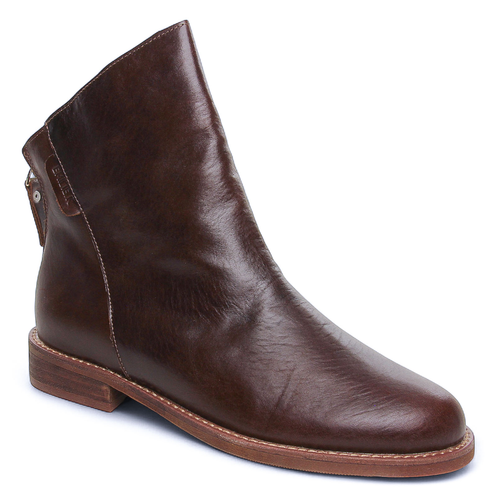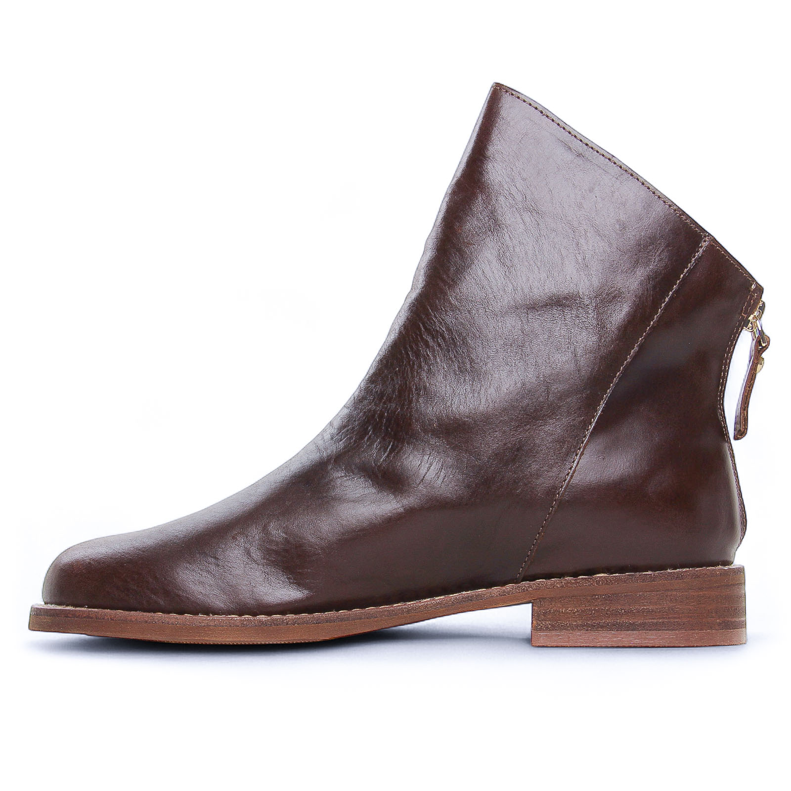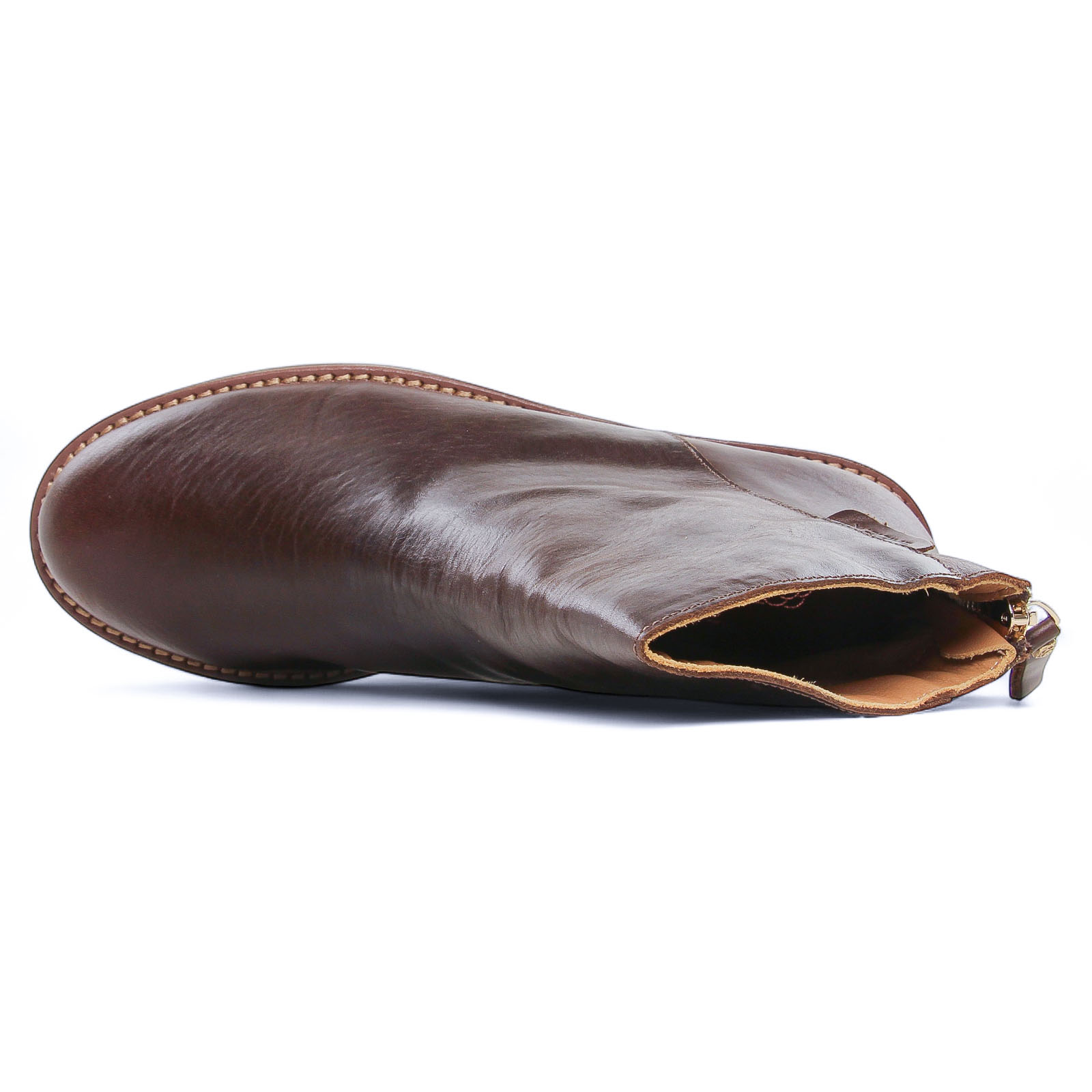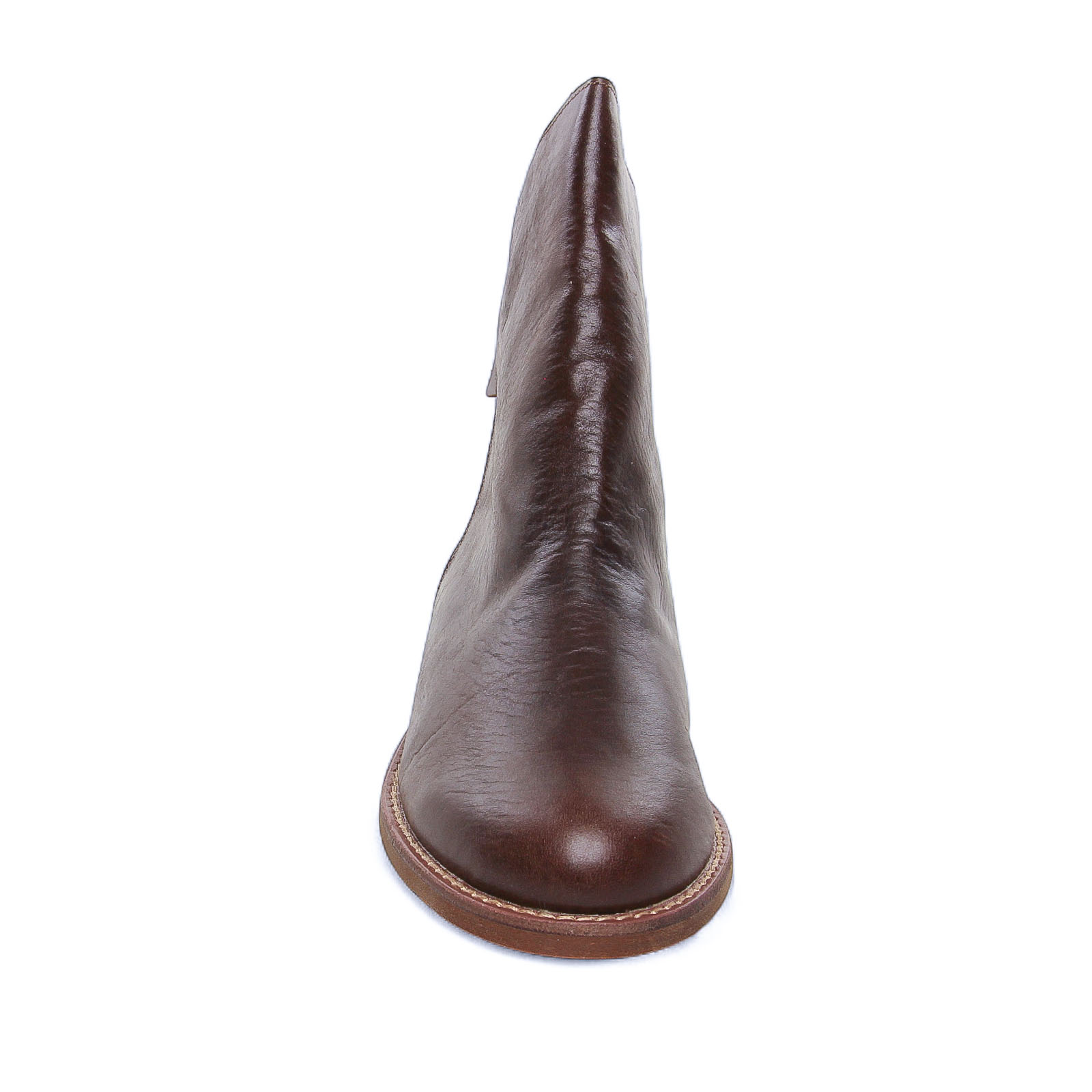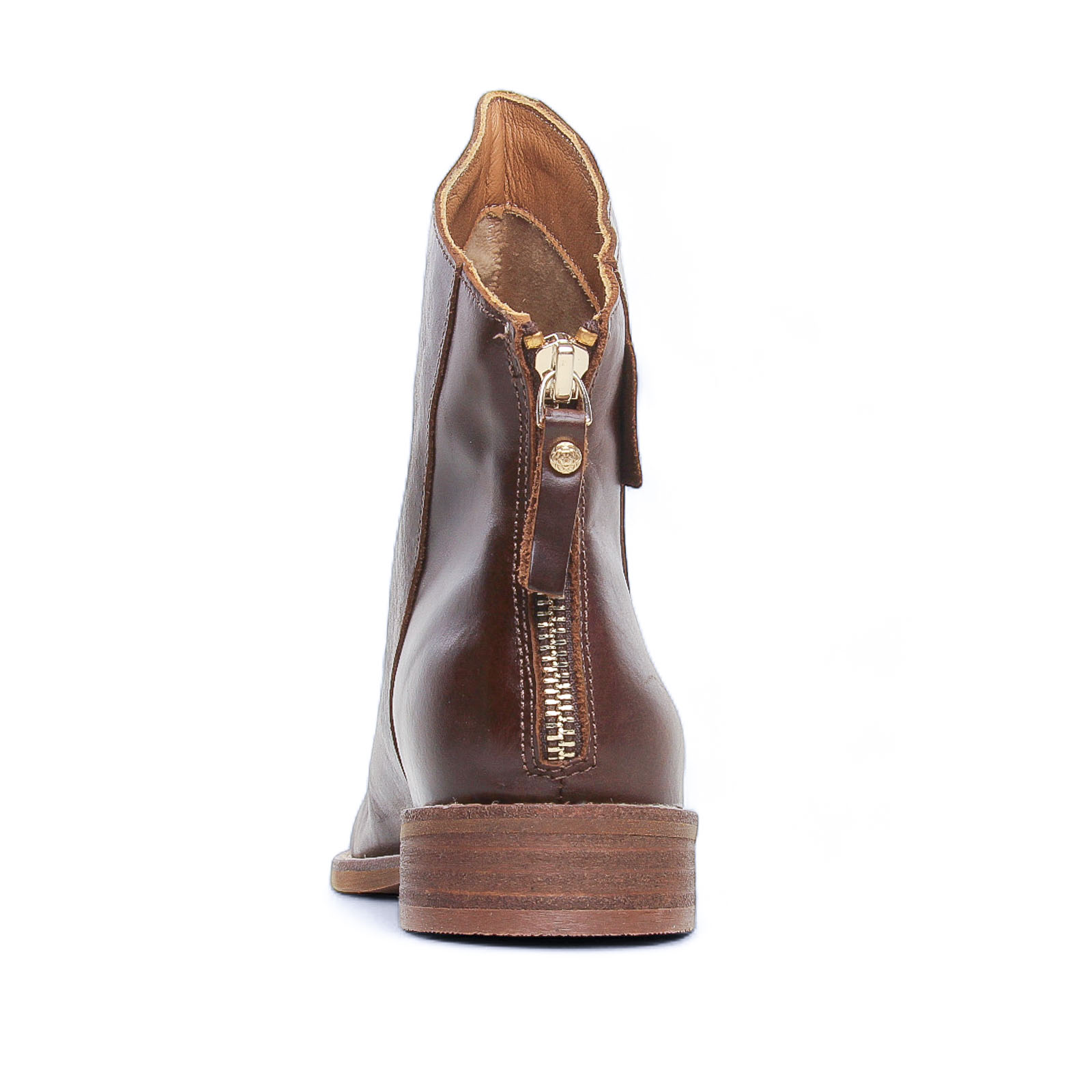 Boots de la marque Émilie Karston de couleur marron. Superbes boots en cuir moderne avec un design chic en sobriété, une tige cuir effet vieilli disponible en marron ou en noir, une découpe originale, boots doublées textile velours, un zip au talon pour un enfilage plus facile, nouvelle collection Emilie Karston.