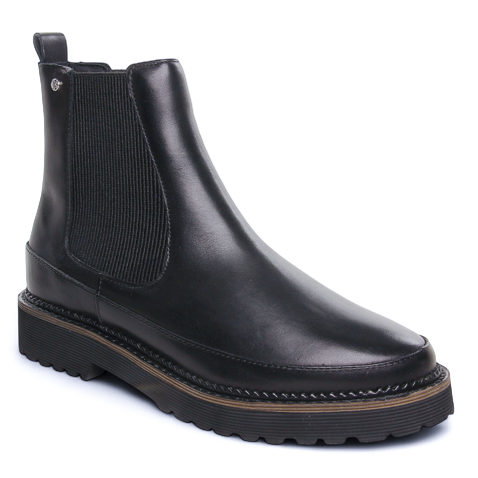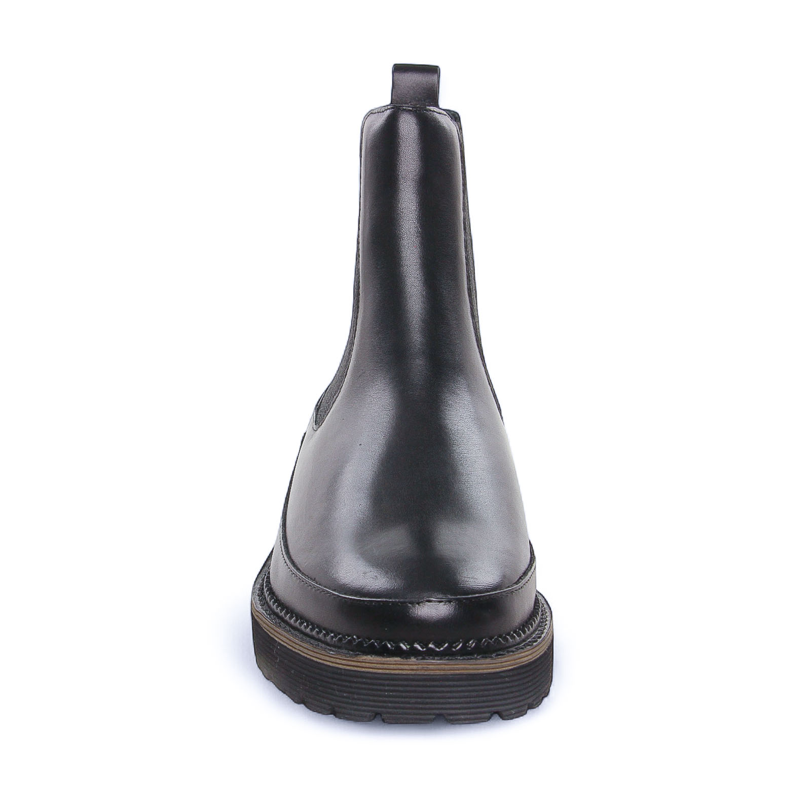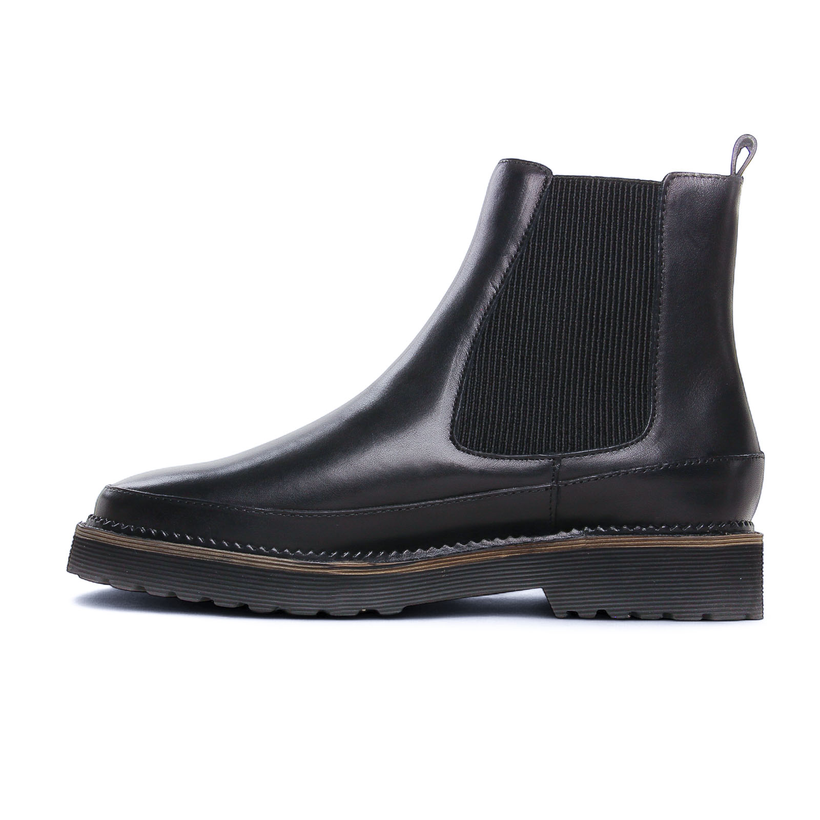 Boots Élastiquées de la marque Émilie Karston de couleur noir. Superbe boots Chelsea en cuir nubuck et cuir lisse, ganses élastiques sur chaque coté caractéristiques de la Chelsea, une semelle plateau crantée moderne et souple, une hauteur sous talon de 3 cm, nouvelle création signé Emilie Karston.