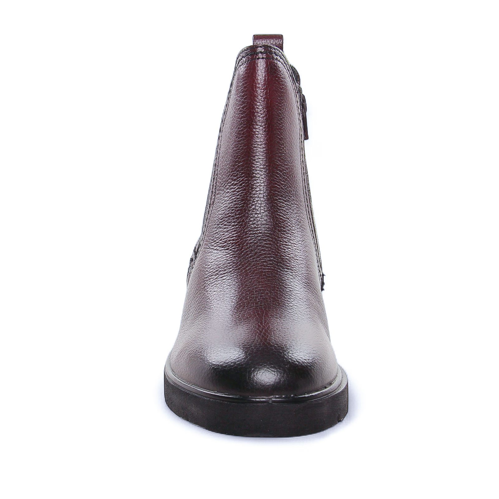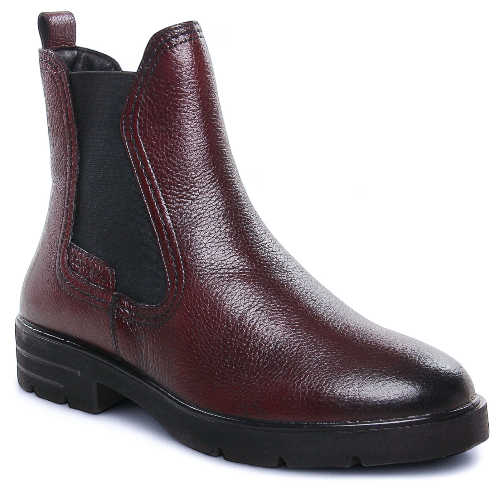 Boots Élastiquées de la marque Tamaris de couleur bordeaux. Un style indémodable, les boots Chelsea sont un must have pour votre garde robe ! Ici avec une tige en cuir grainé noir ou marron, doublure et première textile chaude, boots zippées coté intérieur pour une chausse rapide et facile, bottines signées Tamaris nouvelle collection automne hiver 2025.