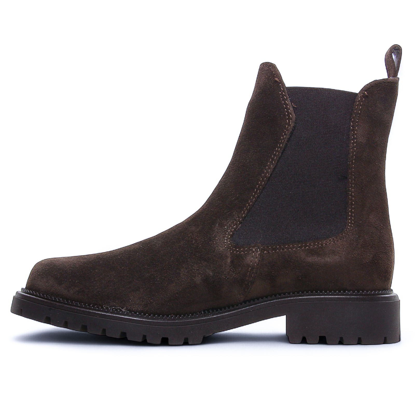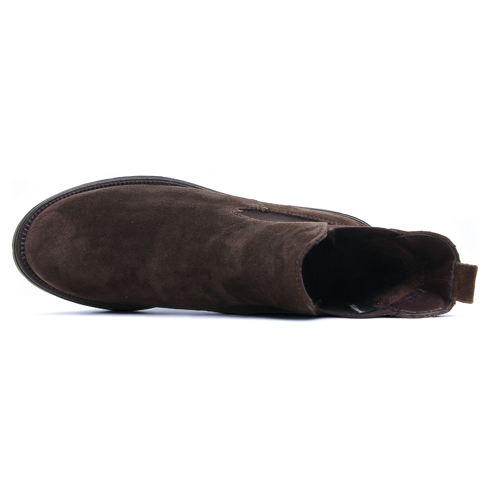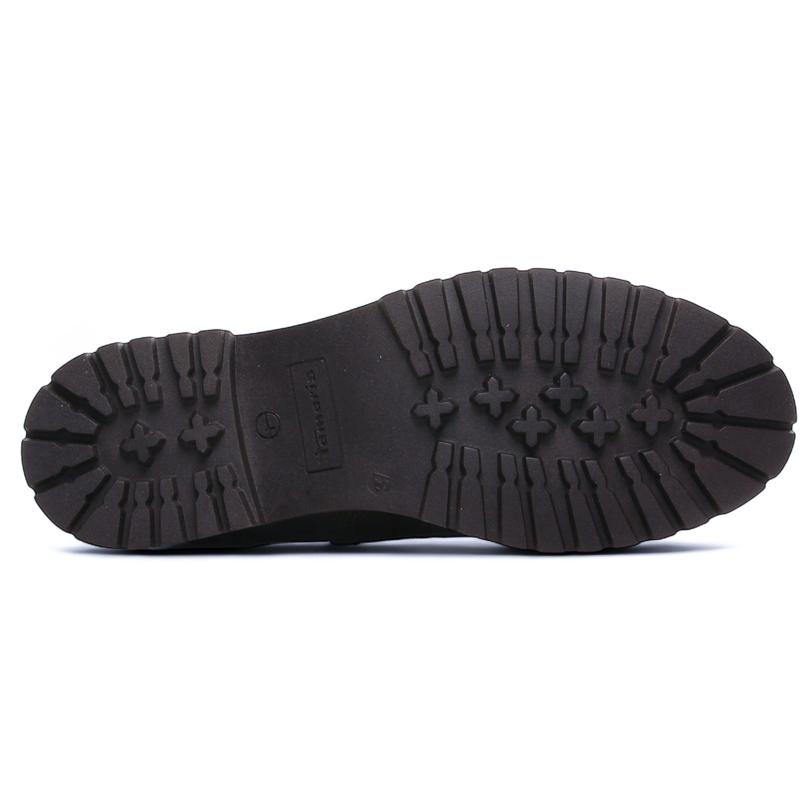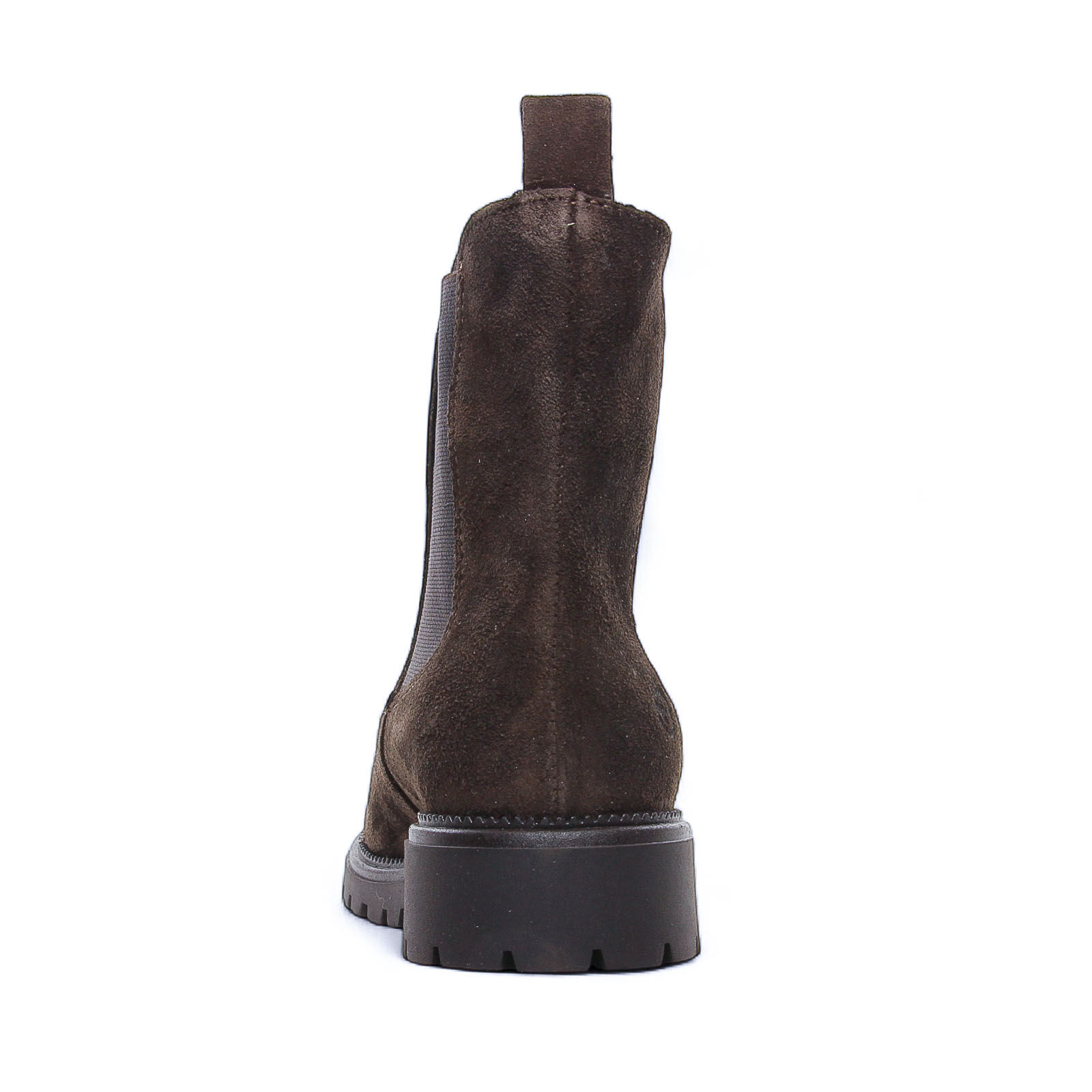 Boots Élastiquées de la marque Tamaris de couleur marron. Une semelle épaisse noire crantée débordante pour une touche moderne et rock au style classique de la boots Chelsea, bottine à tige haute doublée polaire, une tige en cuir lisse noir ou en cuir nubuck brun, ces jolies bottines Chelsea reviennent pour cette nouvelle collection automne hiver de la marque allemande Tamaris.