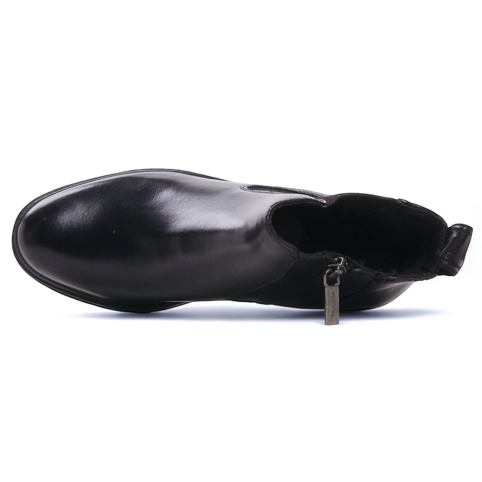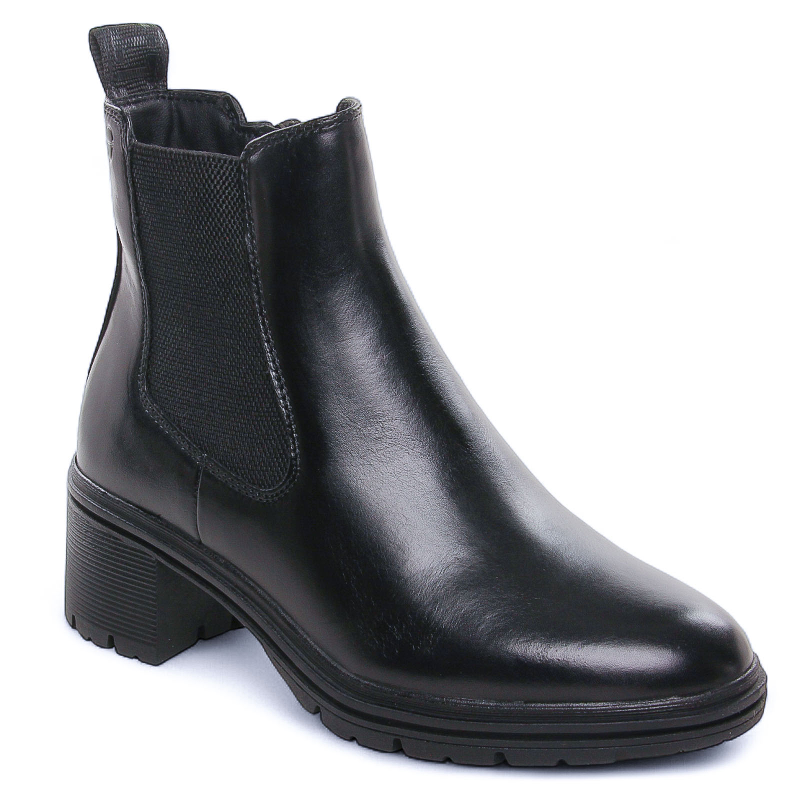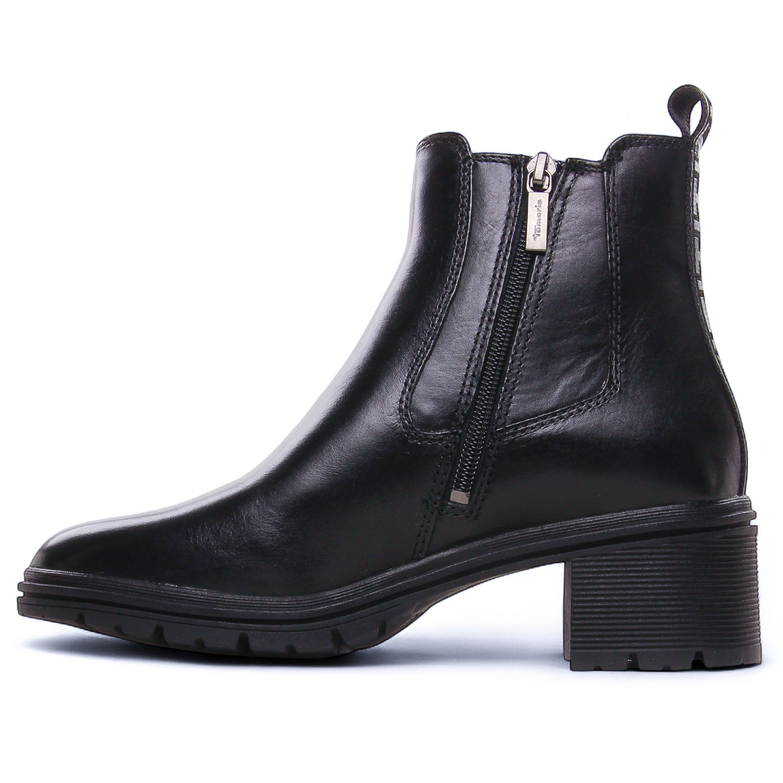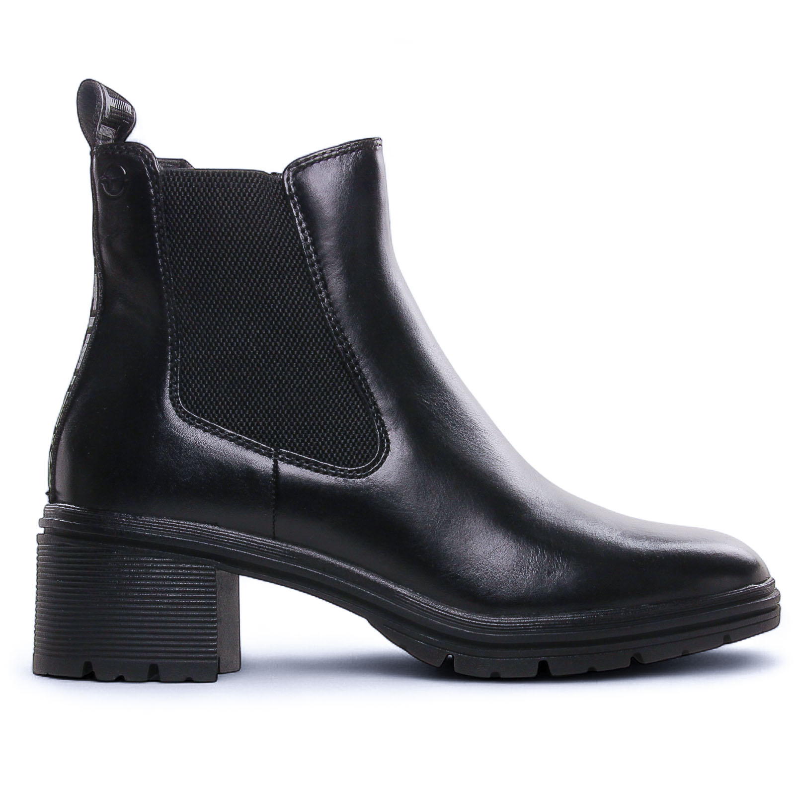 Boots Élastiquées de la marque Tamaris de couleur noir lisse. Pour un élégant style citadin, optez pour ces boots à talon haut de 5 cm bottines style Chelsea indémodables et signées par la marque Tamaris pour sa nouvelle collection automne hiver 2025, bottines élastiquées disponibles en cuir lisse marron ou noir.