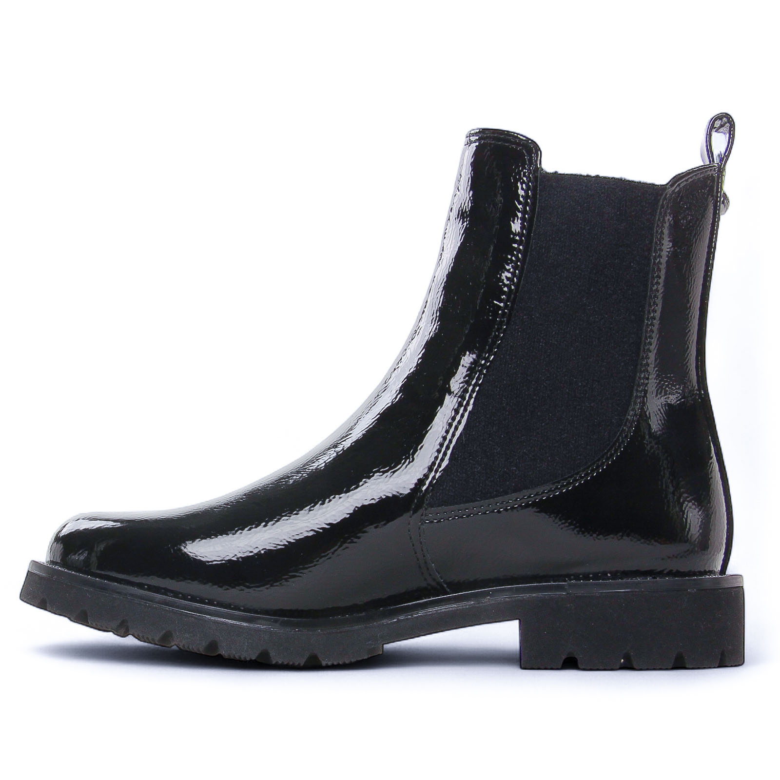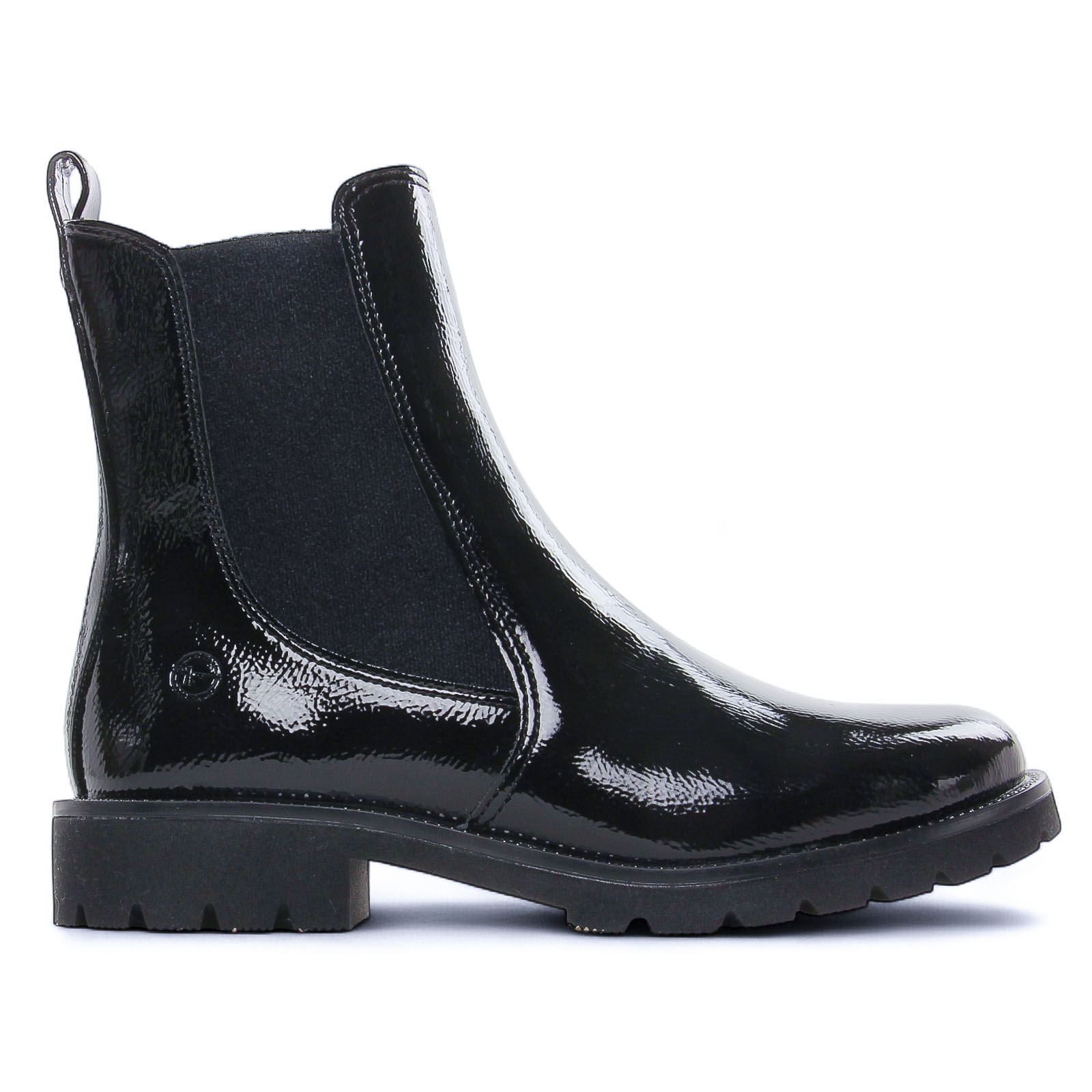 Boots Élastiquées de la marque Tamaris de couleur noir. Chics et élégantes boots Chelsea avec une semelle en gomme légère et souple, une tige en simili cuir vernis, doublure et première chaude, bottines de la nouvelle collection automne hiver 2025.