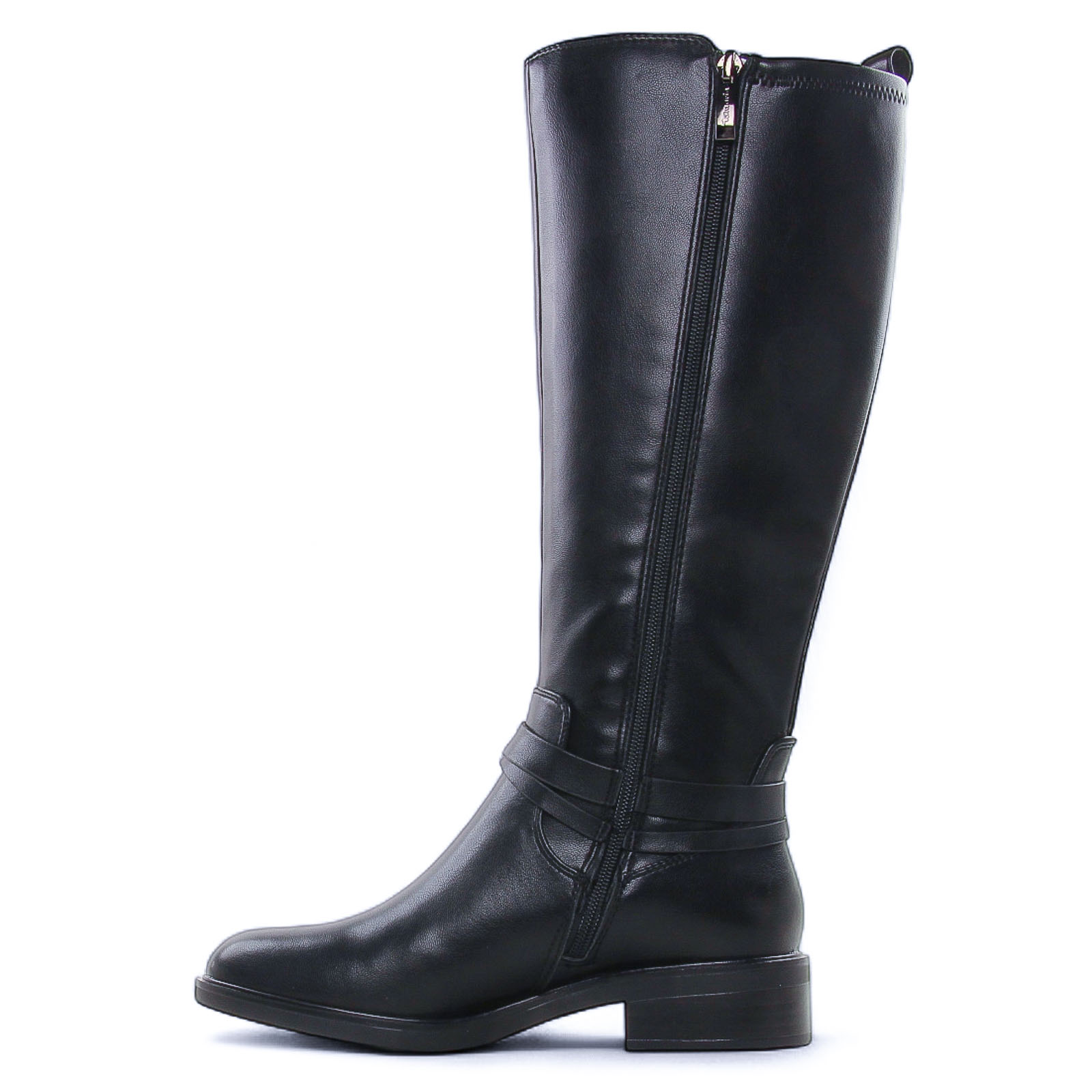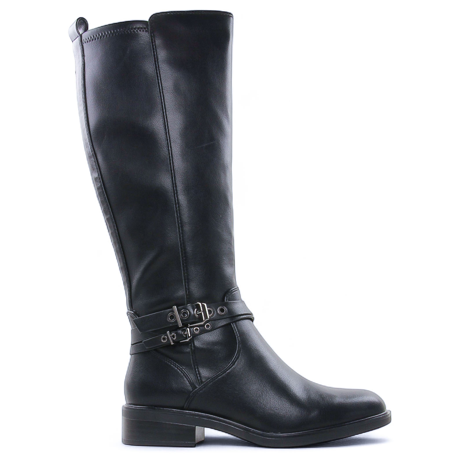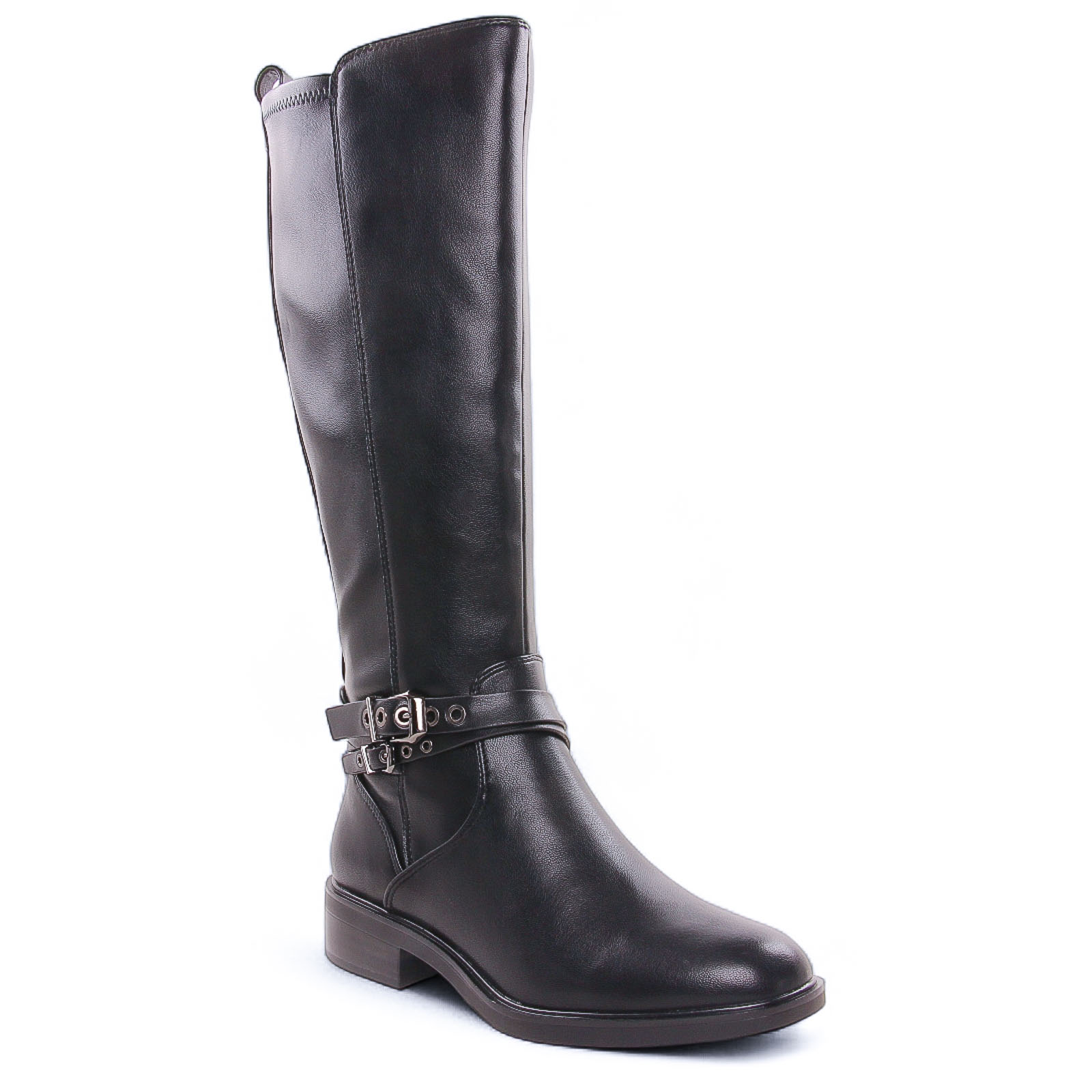 Bottes de la marque Tamaris de couleur noir. Superbes bottes en simili cuir zippée avec deux brides fines à boucle fantaisie autour de la cheville pour la touche glam'rock, un talon haut de 3 cm, bottes de la nouvelle collection automne hiver Tamaris.