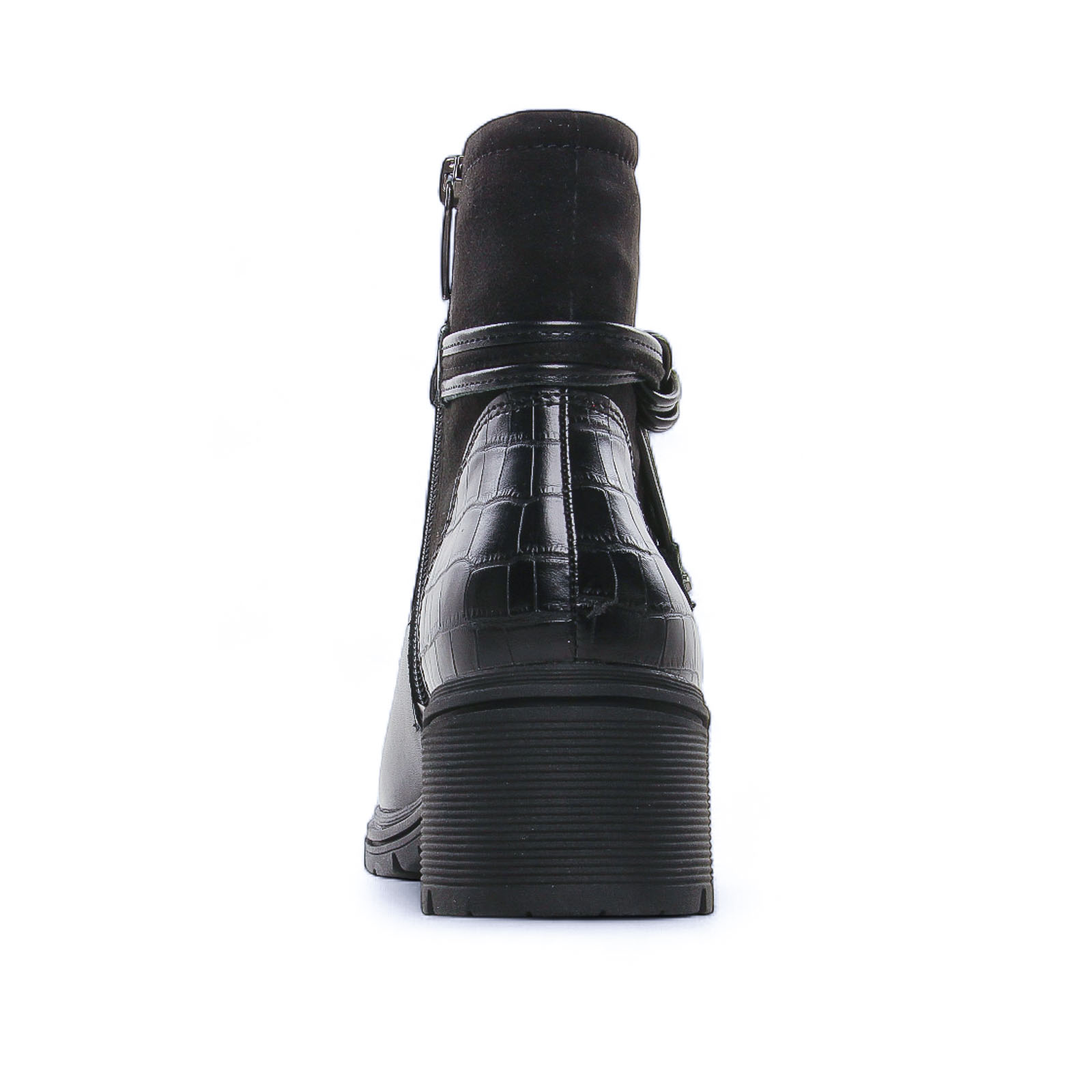 Bottines À Talon de la marque Tamaris de couleur noir. Une pièce incontournable pour un style citadin chic, semelle travaillée, son plateau de 4 cm et sa boucle tendance lui donnent du caractère, tandis que la technologie Touch it à mémoire de forme assure un confort durable tout au long de la journée. Du bureau aux promenades sous les premiers froids, il accompagne toutes les morphologies, avance avec confiance et élégance, même en plein hiver.