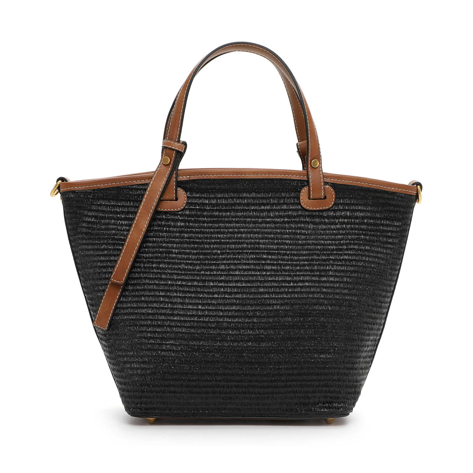 Sac À Main de la marque Tamaris de couleur noir. Grand sac cabas en simili cuir avec une bandoulière de 140 cm amovible, sac à main disponible en noir, vert ou beige clair.