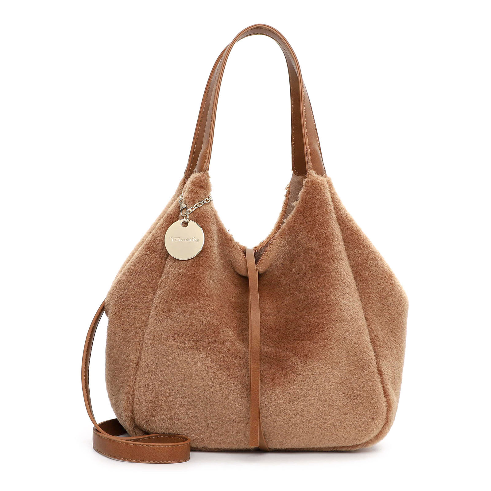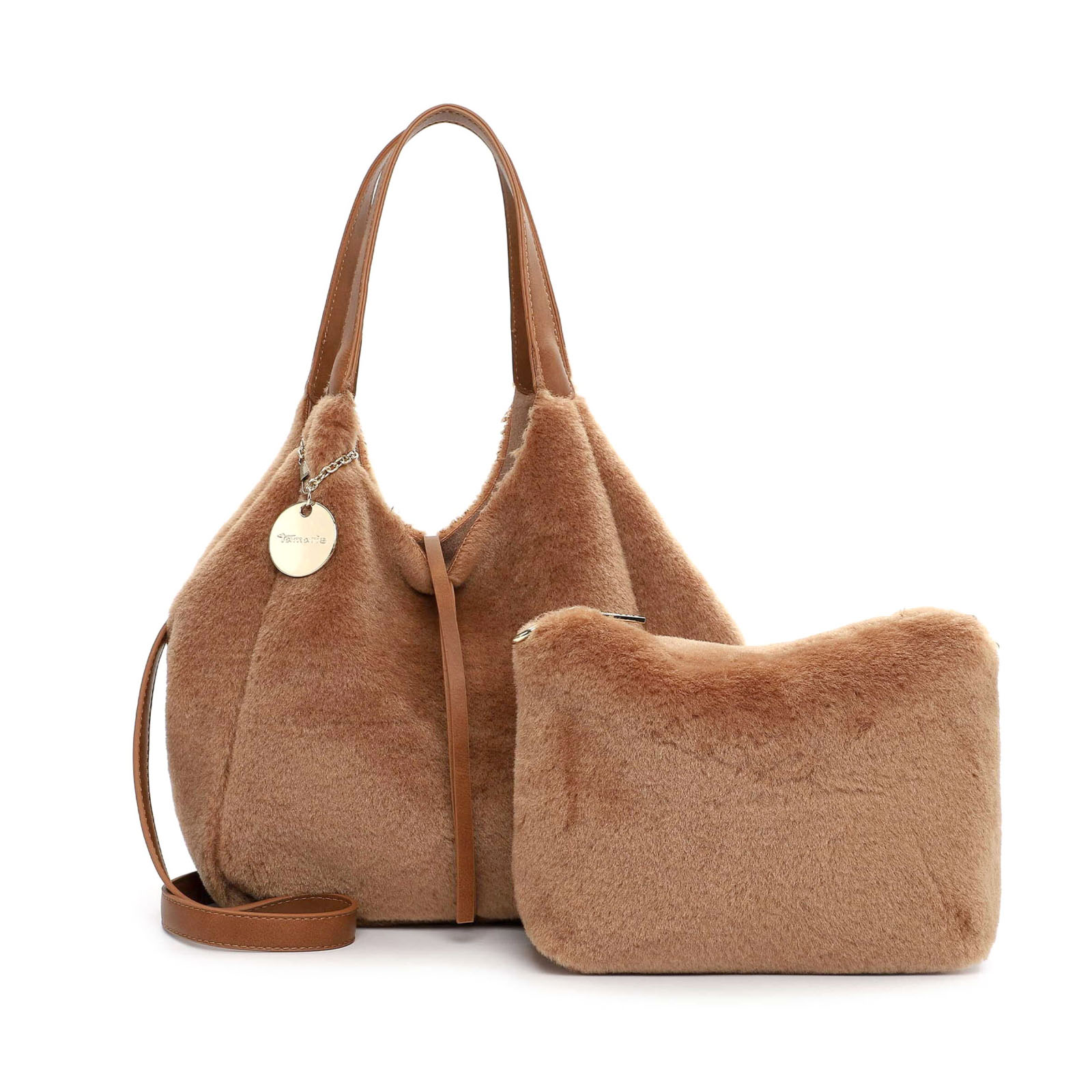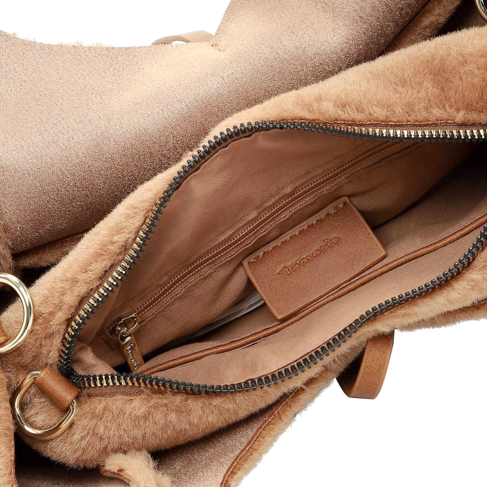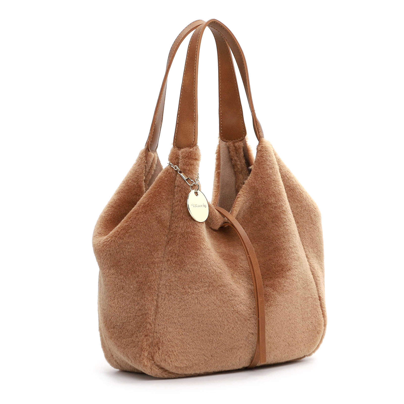 Sac À Main de la marque Tamaris de couleur marron. Superbe sacs en velours simili fourrure disponible en beige taupe ou marron cognac pour cette nouvelle collection Tamaris automne hiver, grand sac chic, pratique et glamour qui embellira votre look d'hiver.