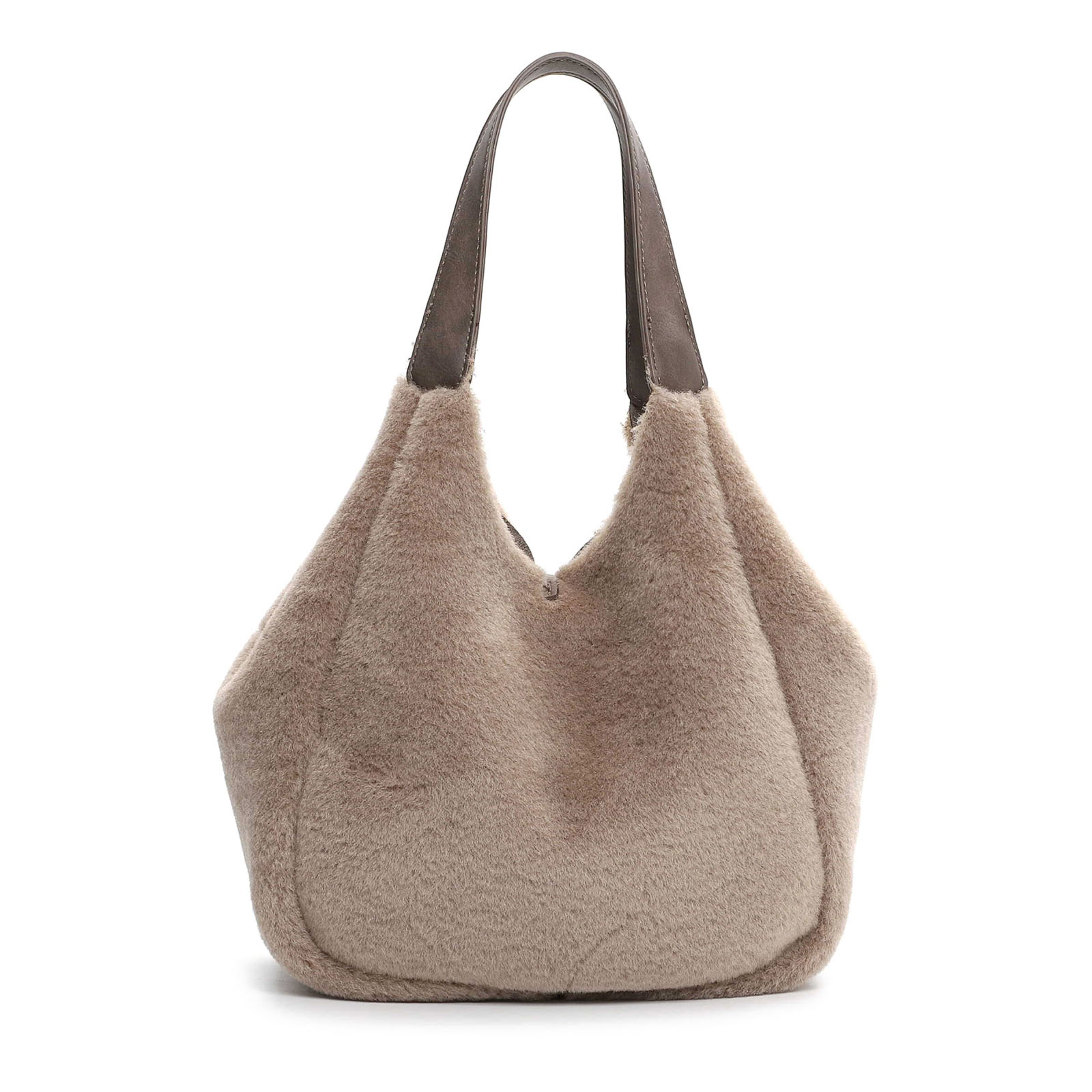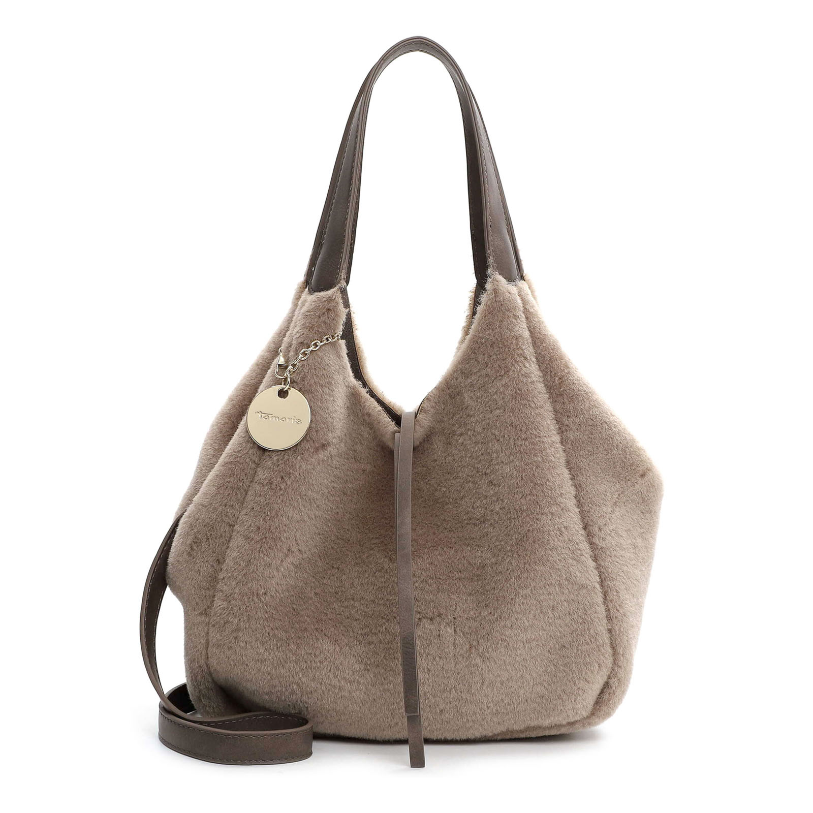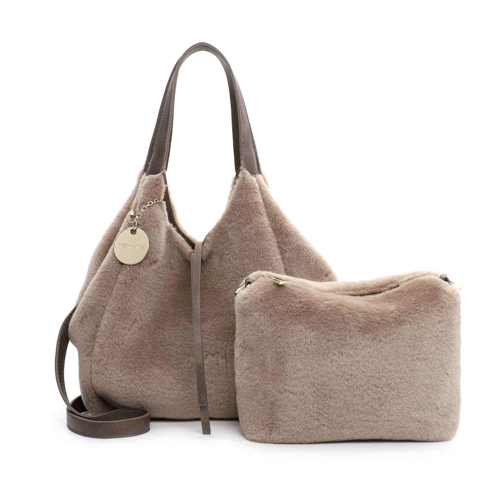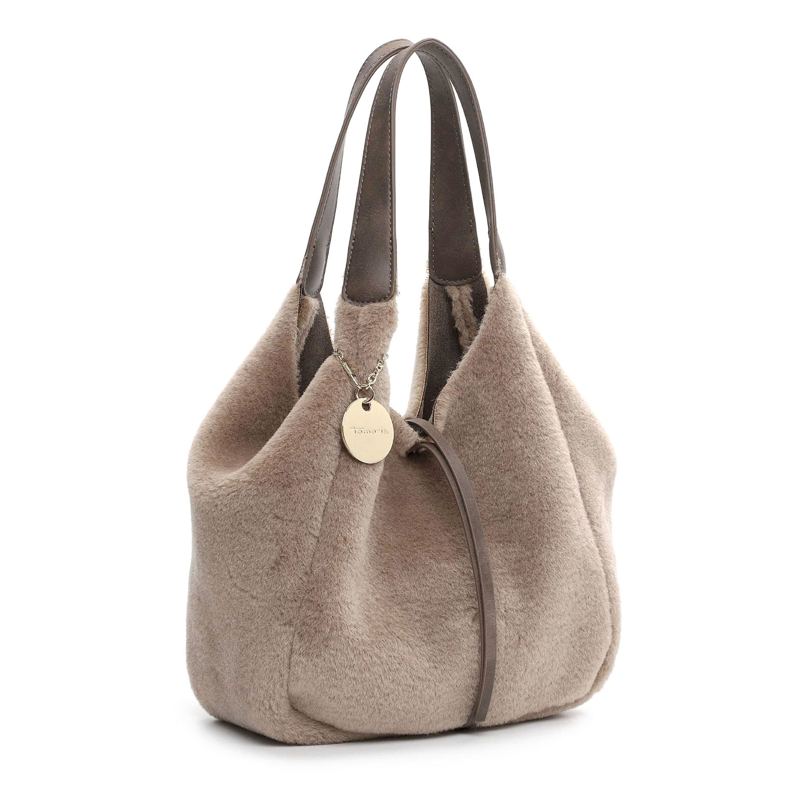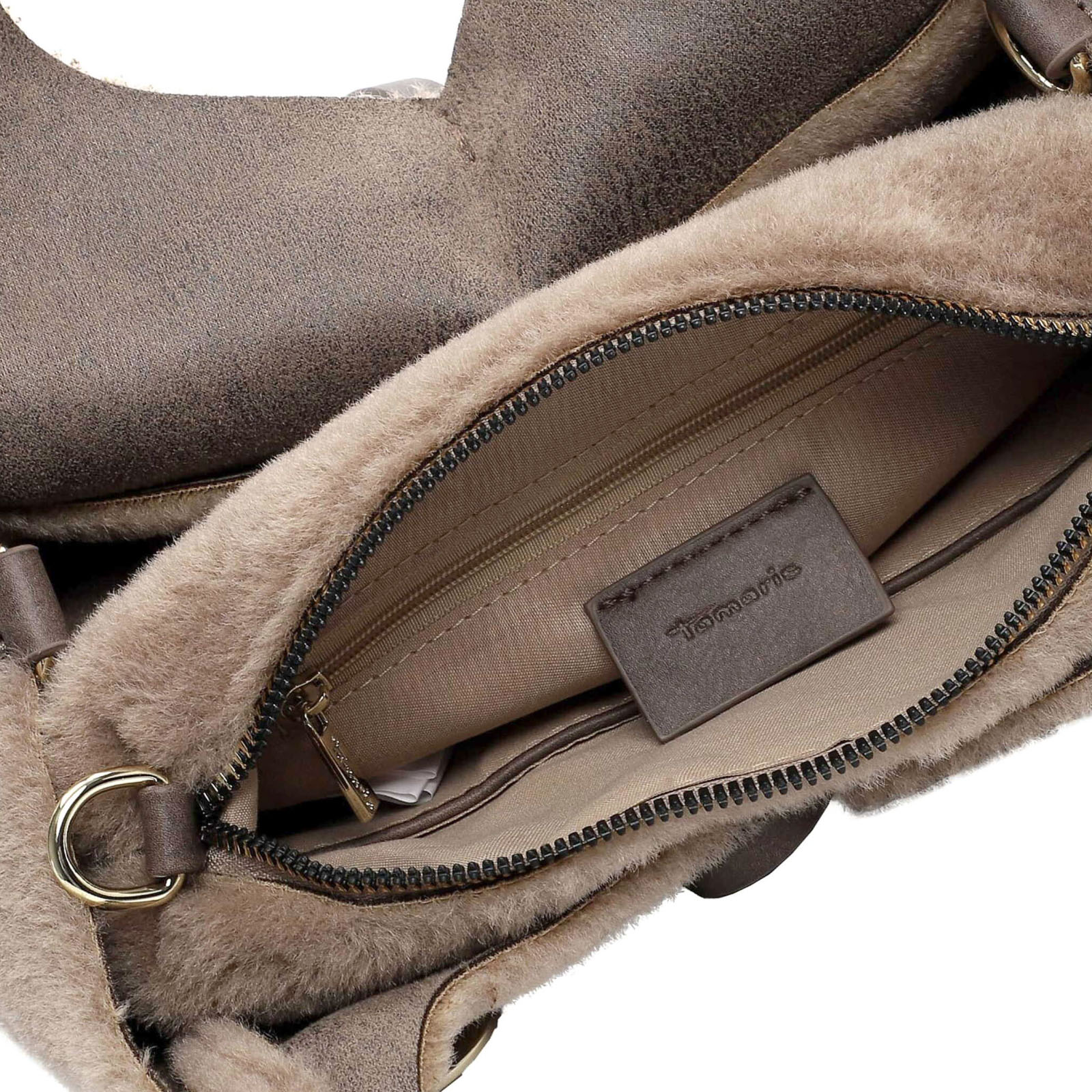 Sac À Main de la marque Tamaris de couleur beige. Superbe sacs en velours simili fourrure disponible en beige taupe ou marron cognac pour cette nouvelle collection Tamaris automne hiver, grand sac chic, pratique et glamour qui embellira votre look d'hiver.