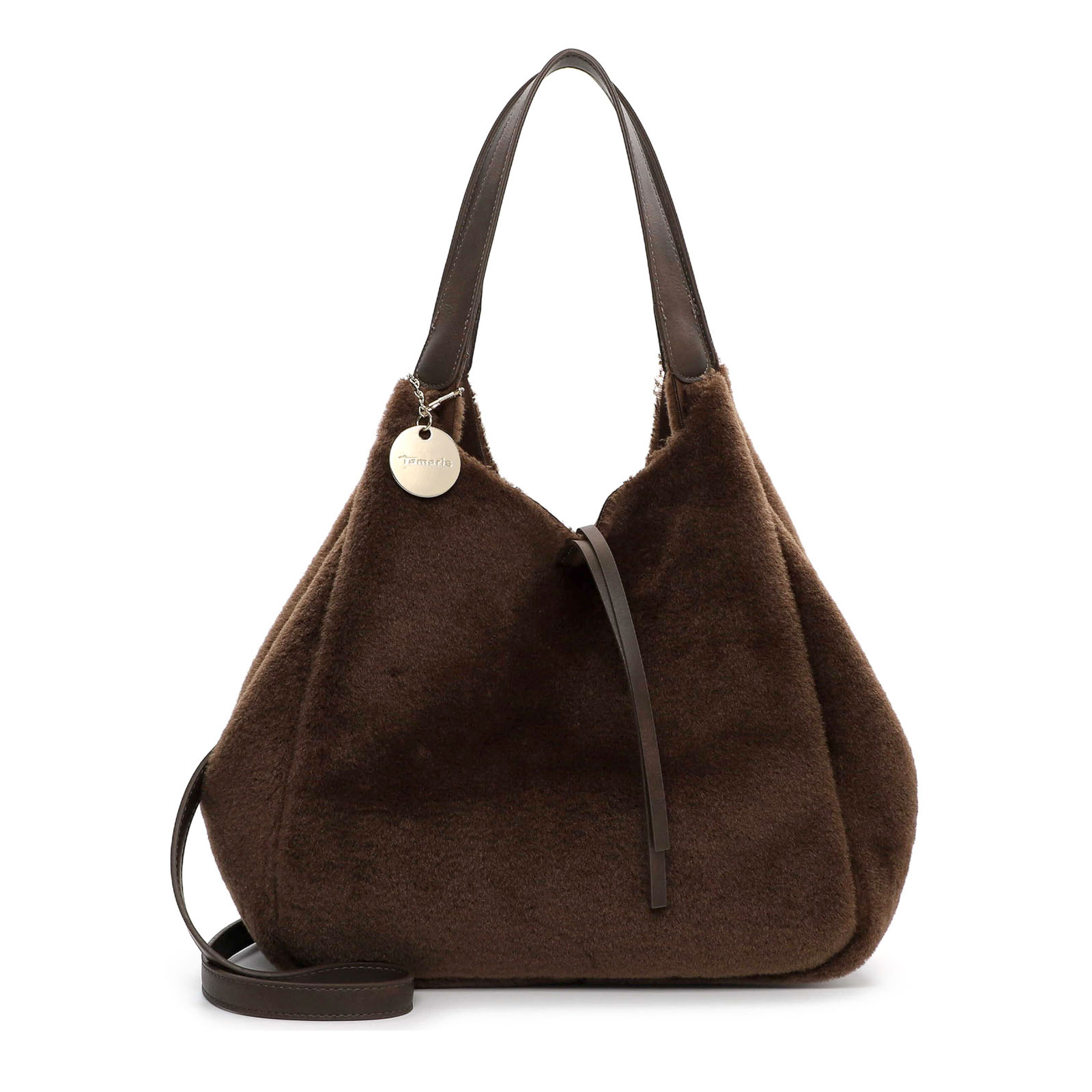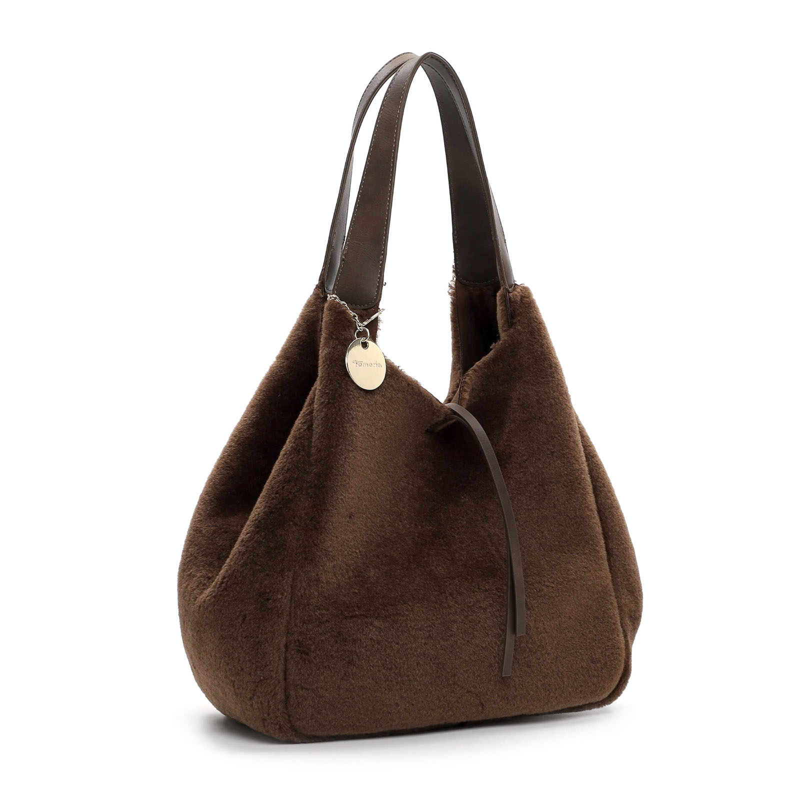Sac À Main de la marque Tamaris de couleur marron. Version plus grande du sac 33831, un sacs en velours simili fourrure disponible en marron foncé ou marron cognac pour cette nouvelle collection Tamaris automne hiver, grand sac chic, pratique et glamour qui embellira votre look pour cet hiver.