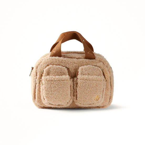 Sac À Main de la marque Vanessa Wu de couleur beige. Superbe mini sac nommé Lorraine, sac bowling en faux shearling beige ou en simili cuir noir, une bandoulière amovible réglable.