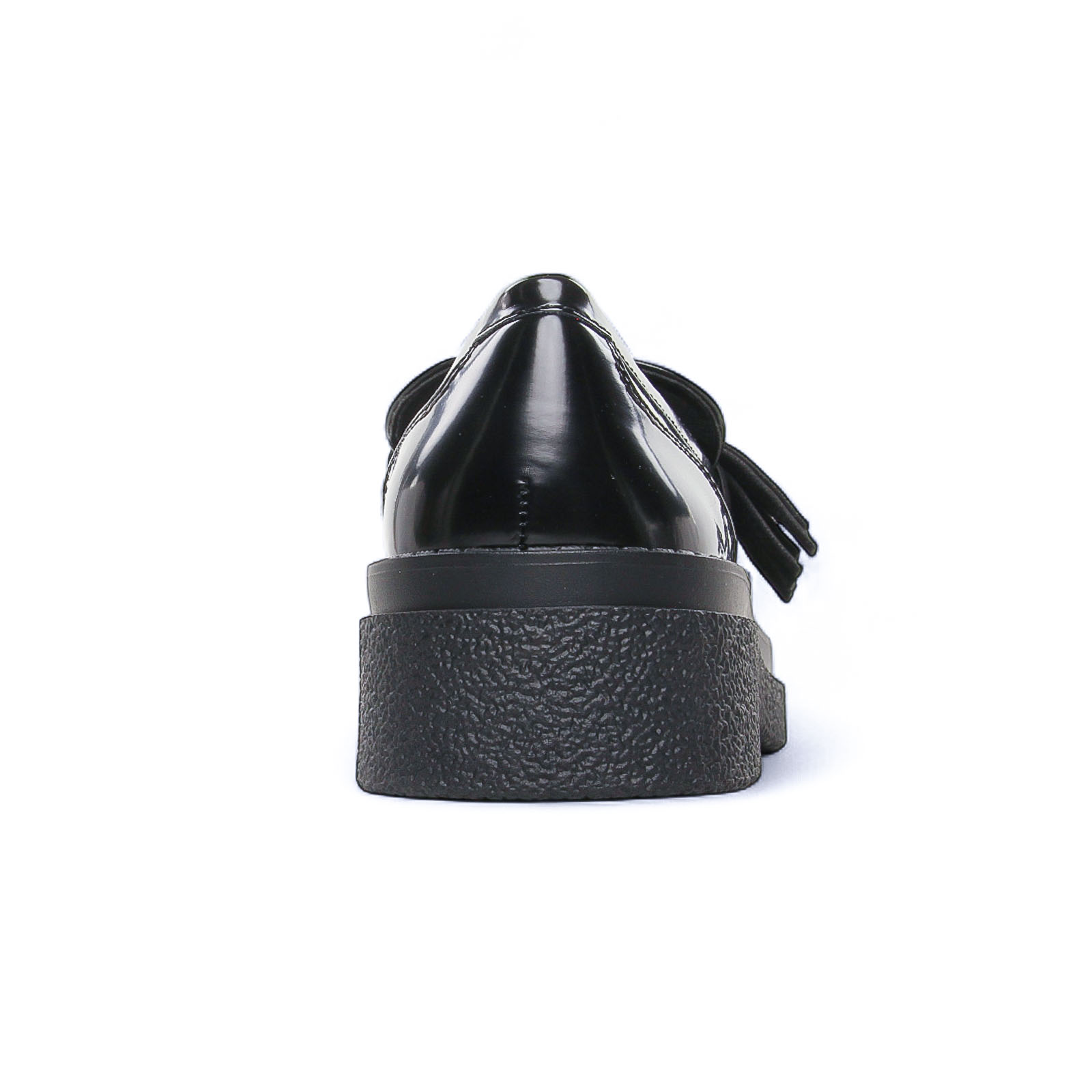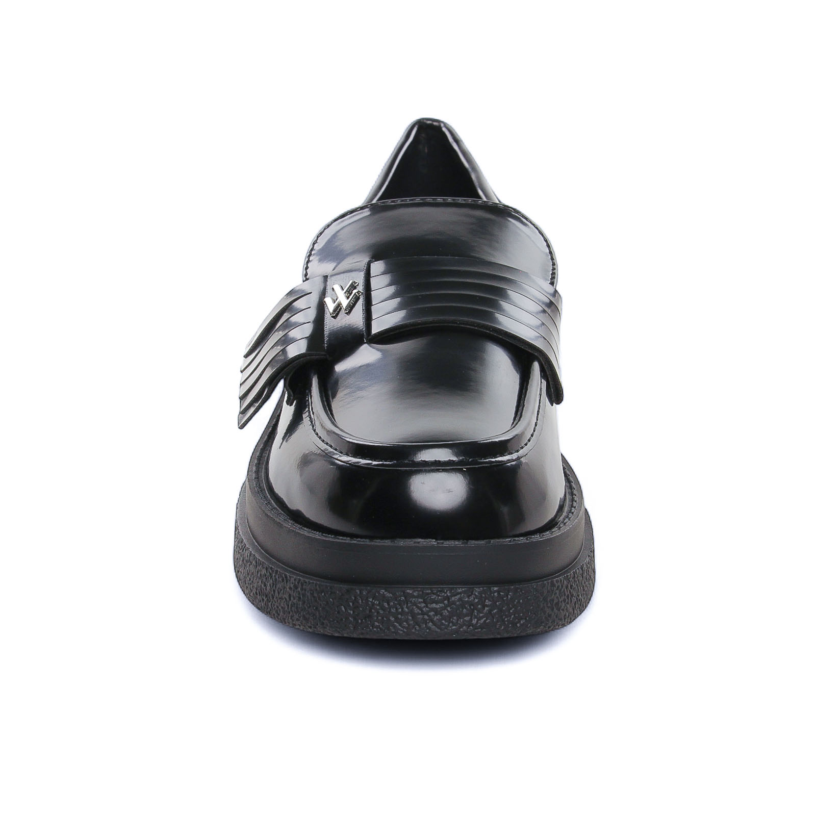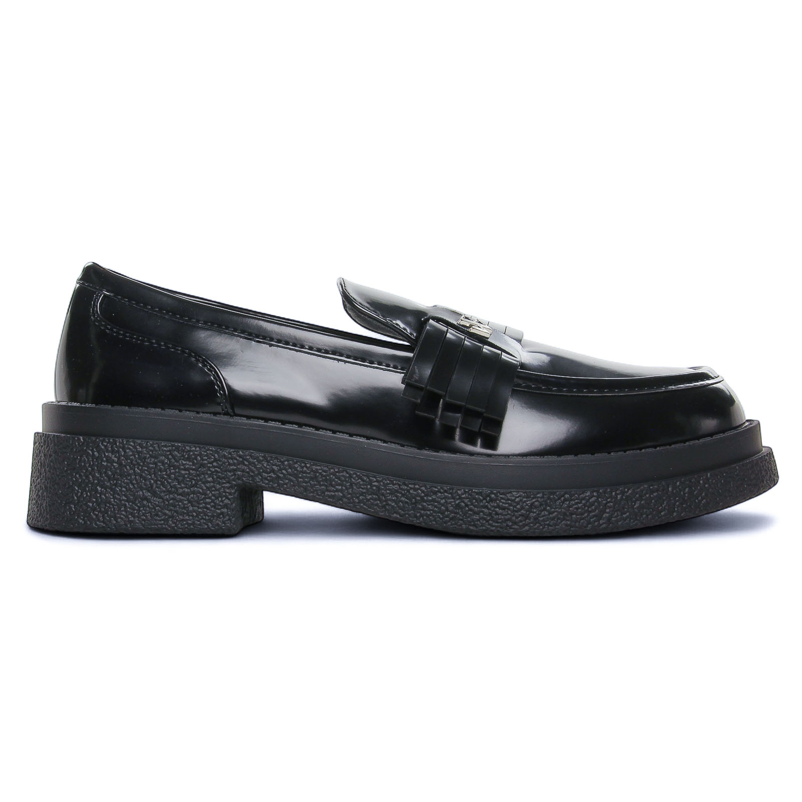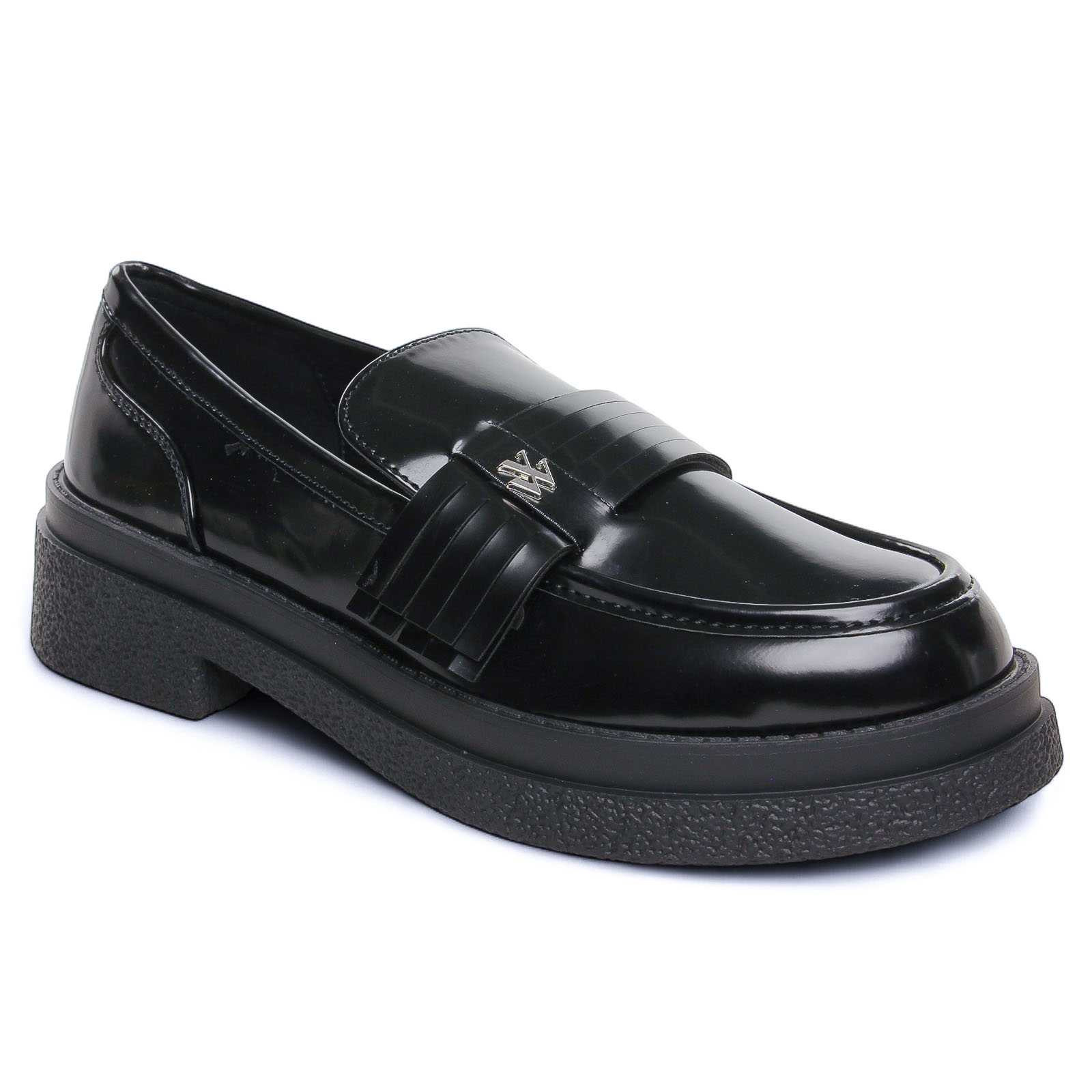 Mocassins de la marque Vanessa Wu de couleur noir. Le mocassin Vanessa Wu femme revisite un grand classique de la chaussure avec une touche moderne et tendance. Confectionné en matière vernie noire, il apporte une élégance raffinée à toutes vos tenues, du bureau aux sorties citadines. Son design épuré est rehaussé par un détail métallique discret et un penny strap revisité, offrant un style chic et intemporel. Sa semelle épaisse et confortable assure stabilité et aisance au quotidien, tout en donnant une allure contemporaine et affirmée.